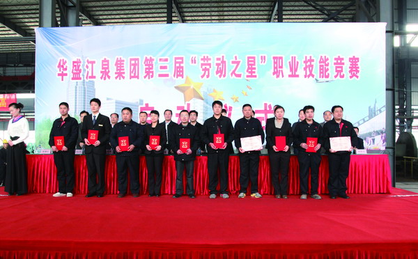 胡冰主持啟動儀式,王廷寶致辭,人力資源和社會保障局局長鄭月慶和楊傳信分別宣讀關于表彰華盛江泉集團“十佳勞動之星”和“十佳帶徒師傅”的決定,主席臺領導為“十佳帶徒師傅“和“十佳勞動之星“獲得者頒發(fā)證書和獎金,王平作重要講話,彭向榮宣布第三屆“勞動之星”職業(yè)技能競賽正式啟動。